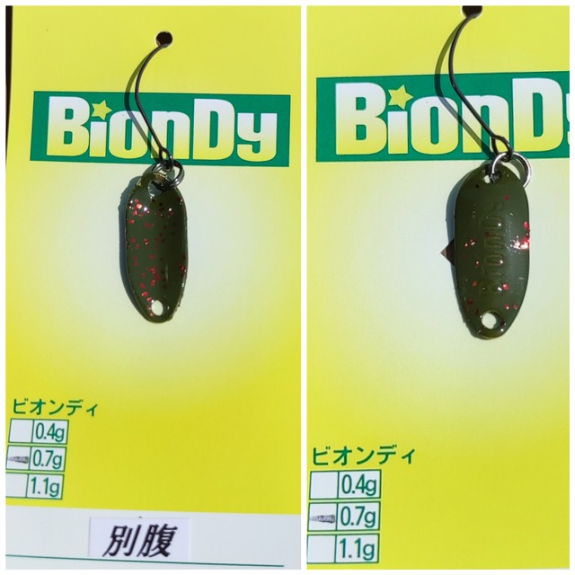 釣れるマイクロスプーン、アングラーズシステム社ビオンディのオリカラです。