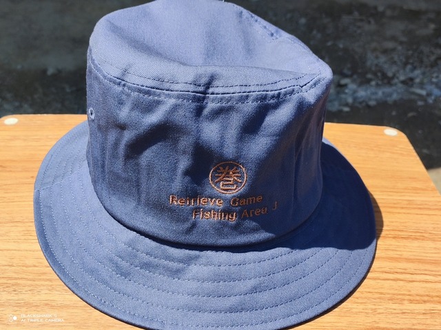 フィッシングエリアJの、巻いて釣るリトリーブゲームのイメージロゴを刺繍したハットです。 綿100%の、しっかりした造りです。 サイズはフリーですが、少し大きめです。
